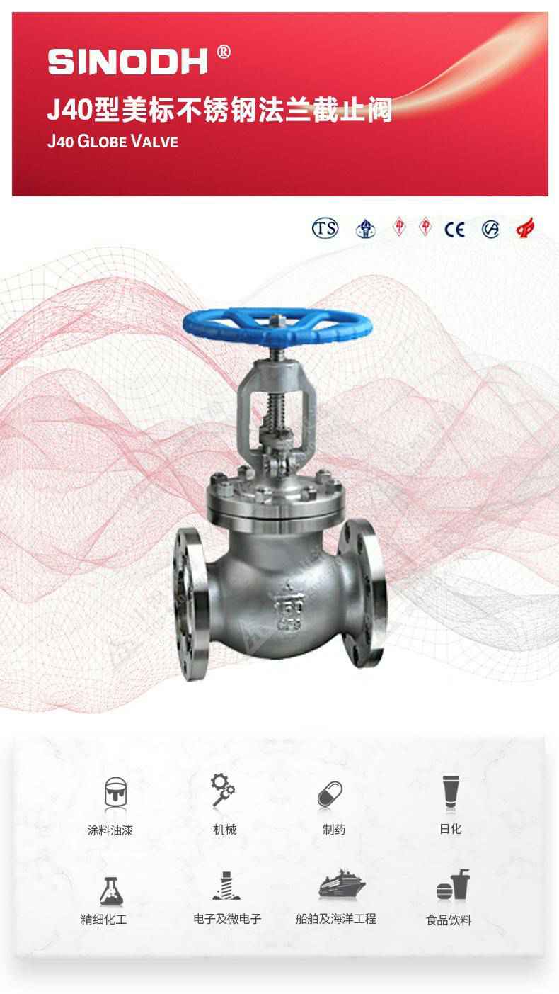 J40型美标不锈钢截止阀,为半岛·官方web站在线-半岛(中国)自主研发生产。本产品的设计制造符合美国国家标准ANSIB16.34,美国石油学会标准AP1 6D和AP I 600要求,产品结构紧凑密、刚性好、封性性能优秀是一种最常见的启闭阀,利用闸板的上下工作来接通(全开)和截断(全关)管道中的流体介质。